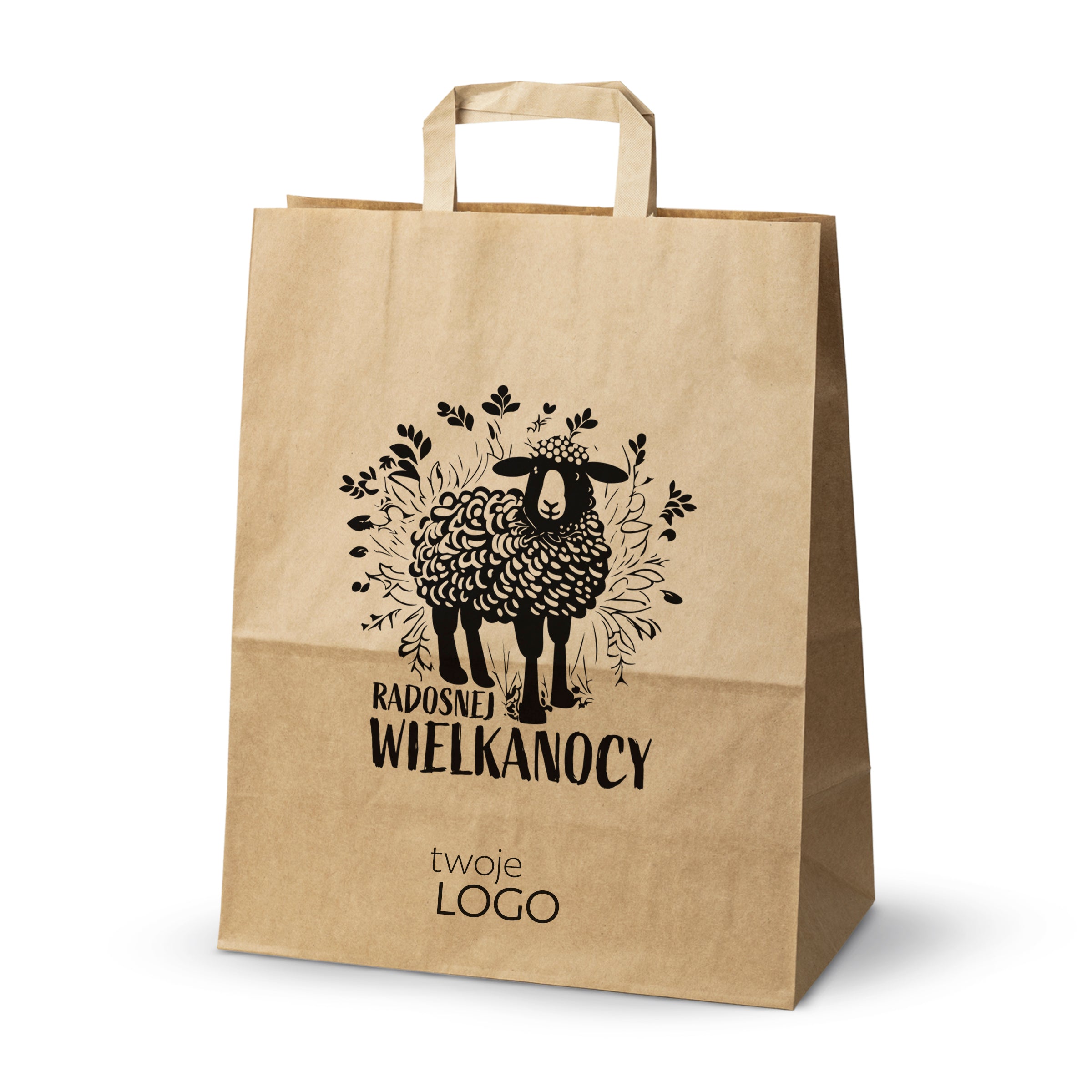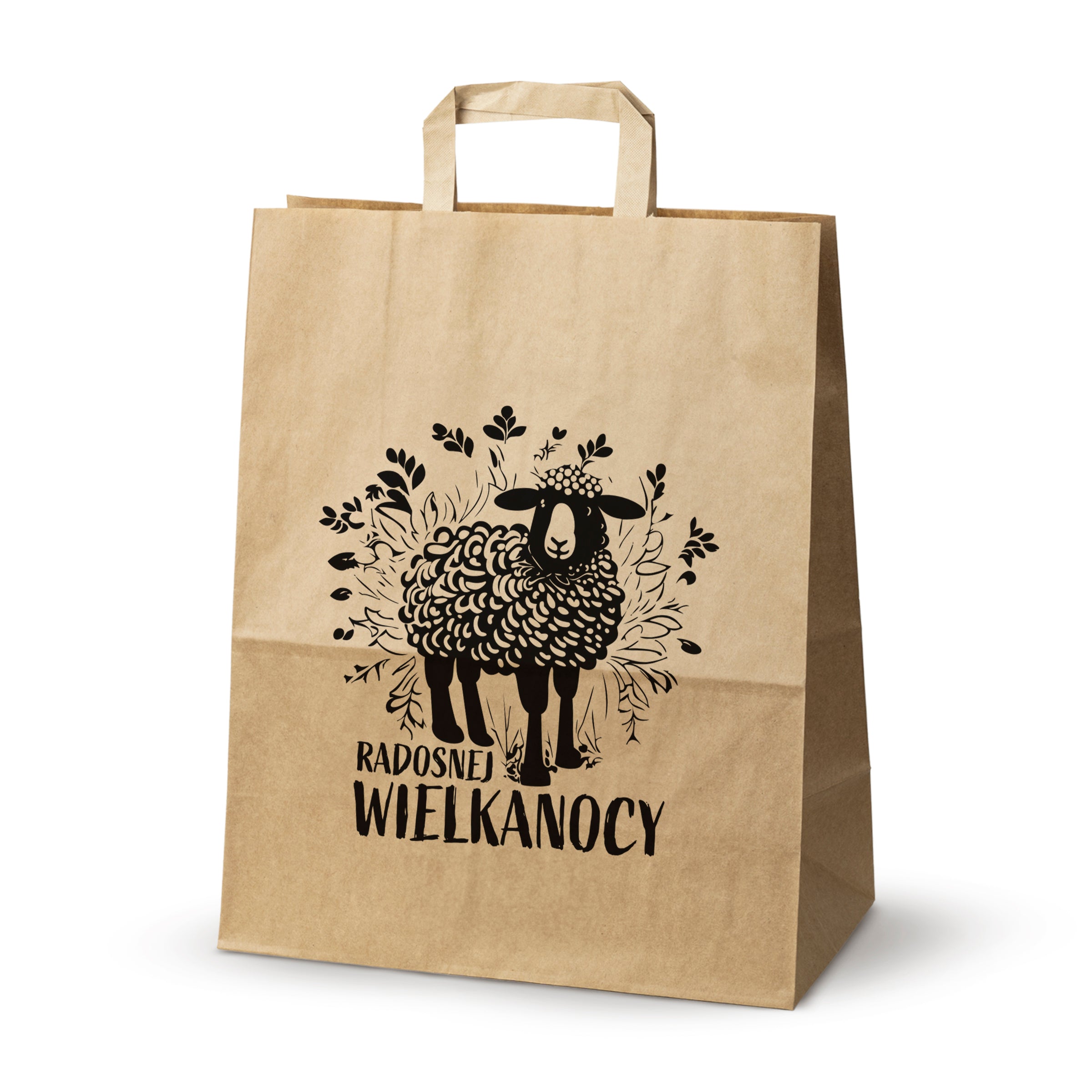 Torba papierowa 50szt. 320x160x390mm BRĄZOWA RADOSNEJ WIELKANOCY