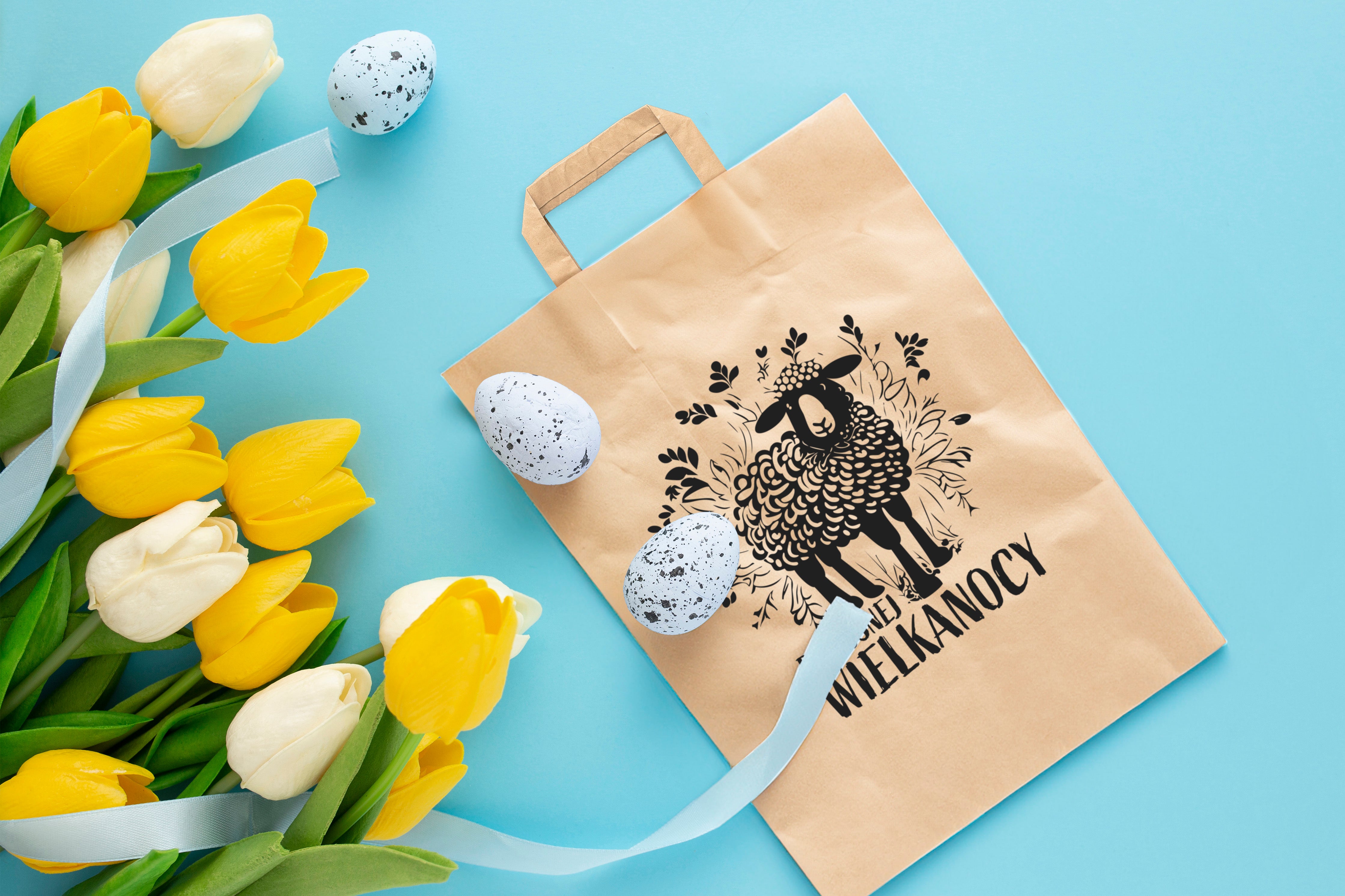 Motiv de Paște: Punga din hârtie cu motiv de Paște este un ambalaj drăguț și colorat, perfect pentru ambalarea obiectelor mici de Paște.