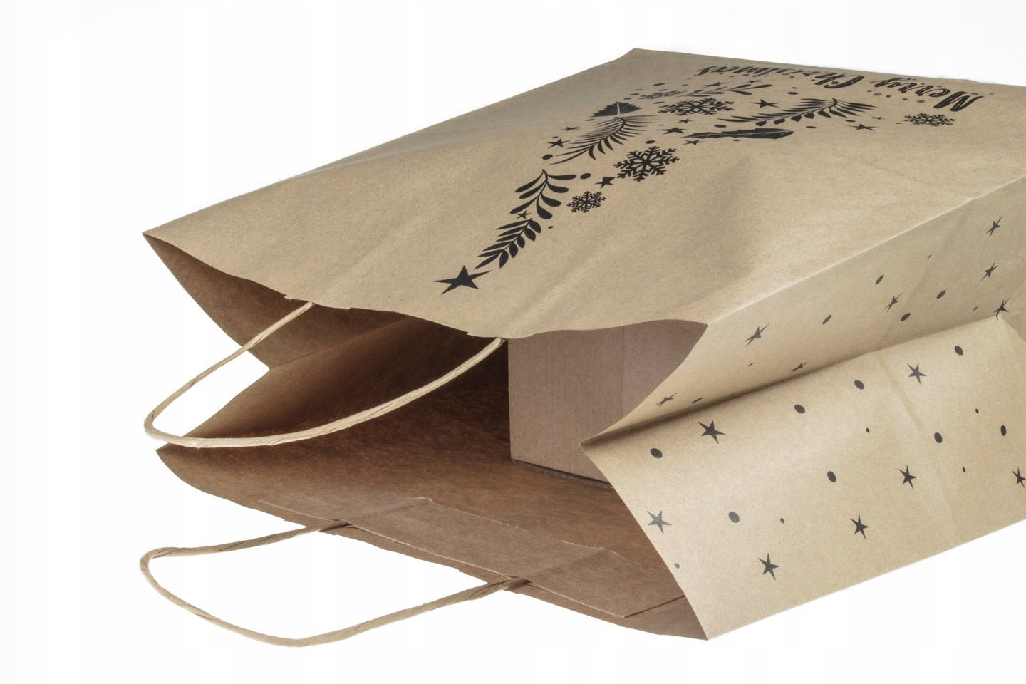 ☃️Utilizare universală: Sacoșa din hârtie este versatilă și se potrivește pentru multe aplicații. Poate fi folosită, de exemplu, ca ambalaj pentru cumpărături sau cadouri de Crăciun.