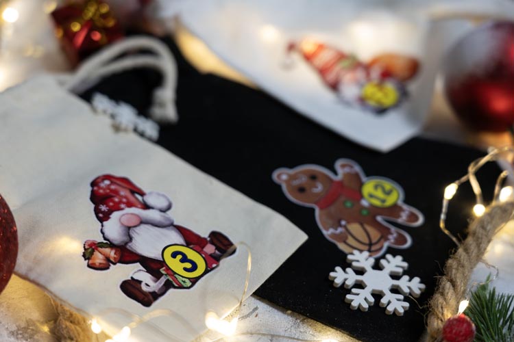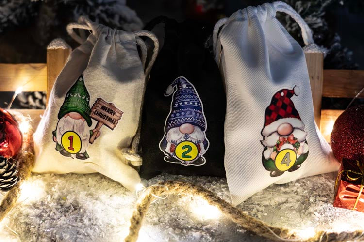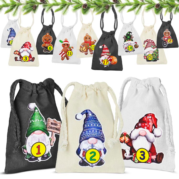 Calendar de Advent – Set de Pungi din Bumbac Moș Crăciun și Biscuiți