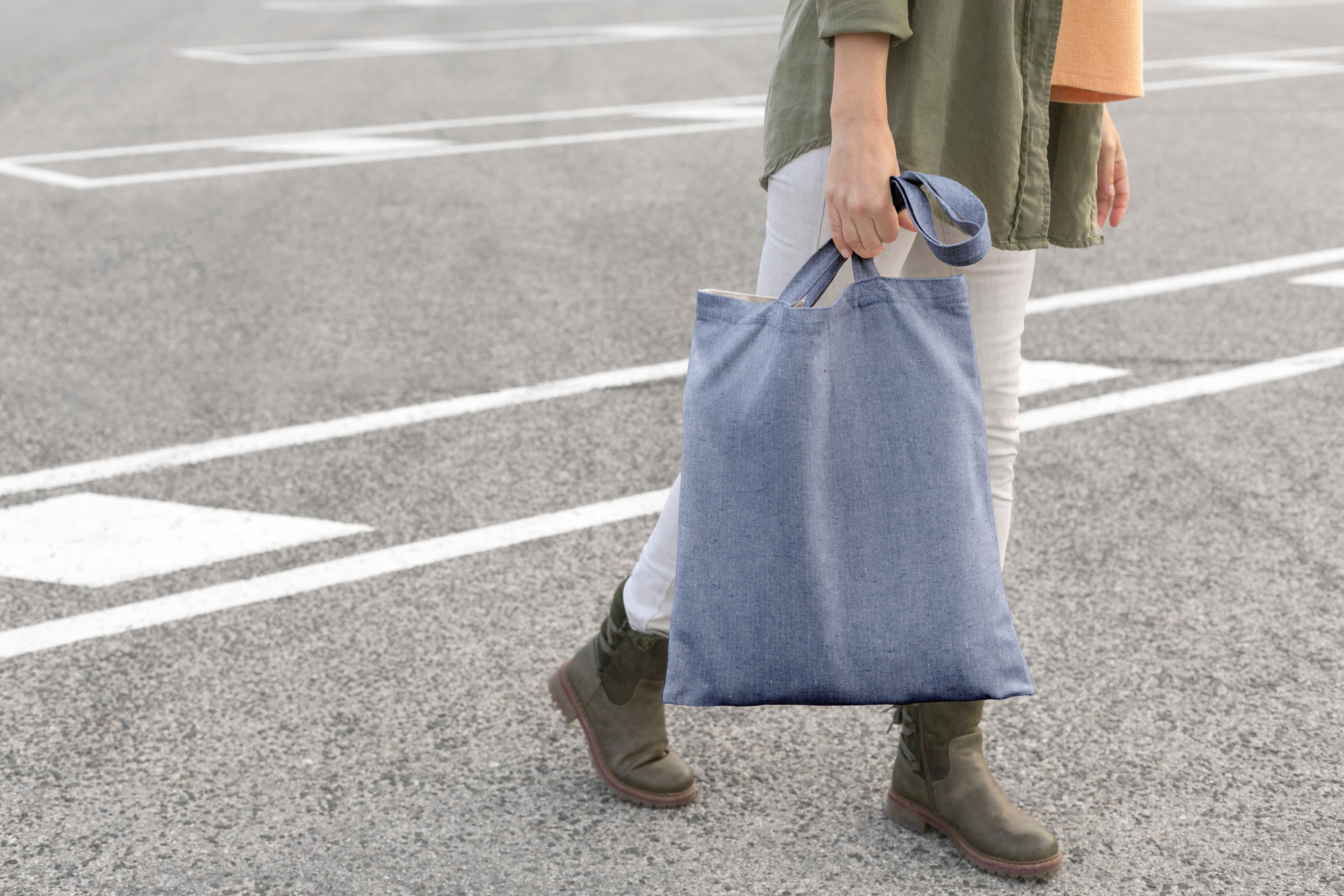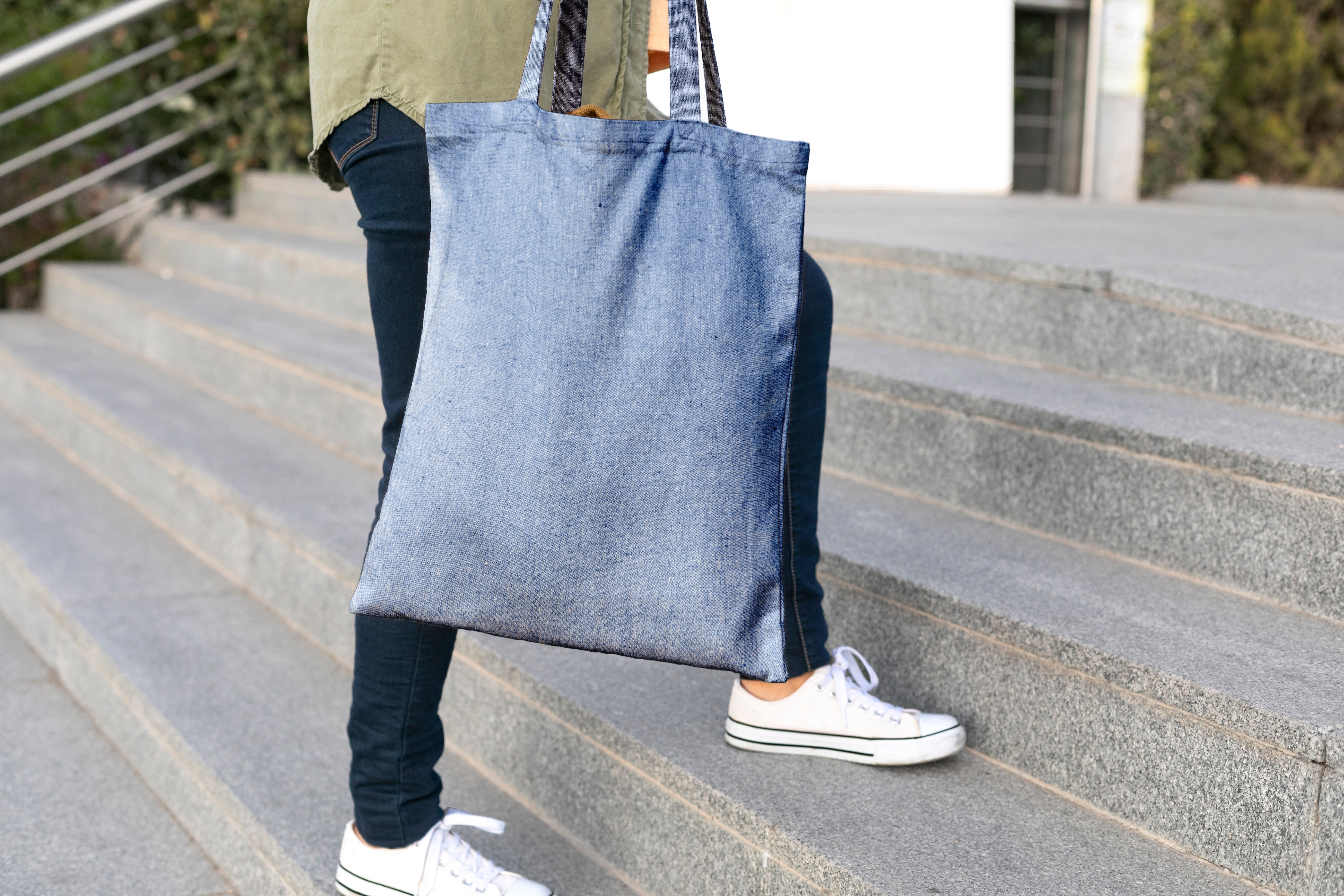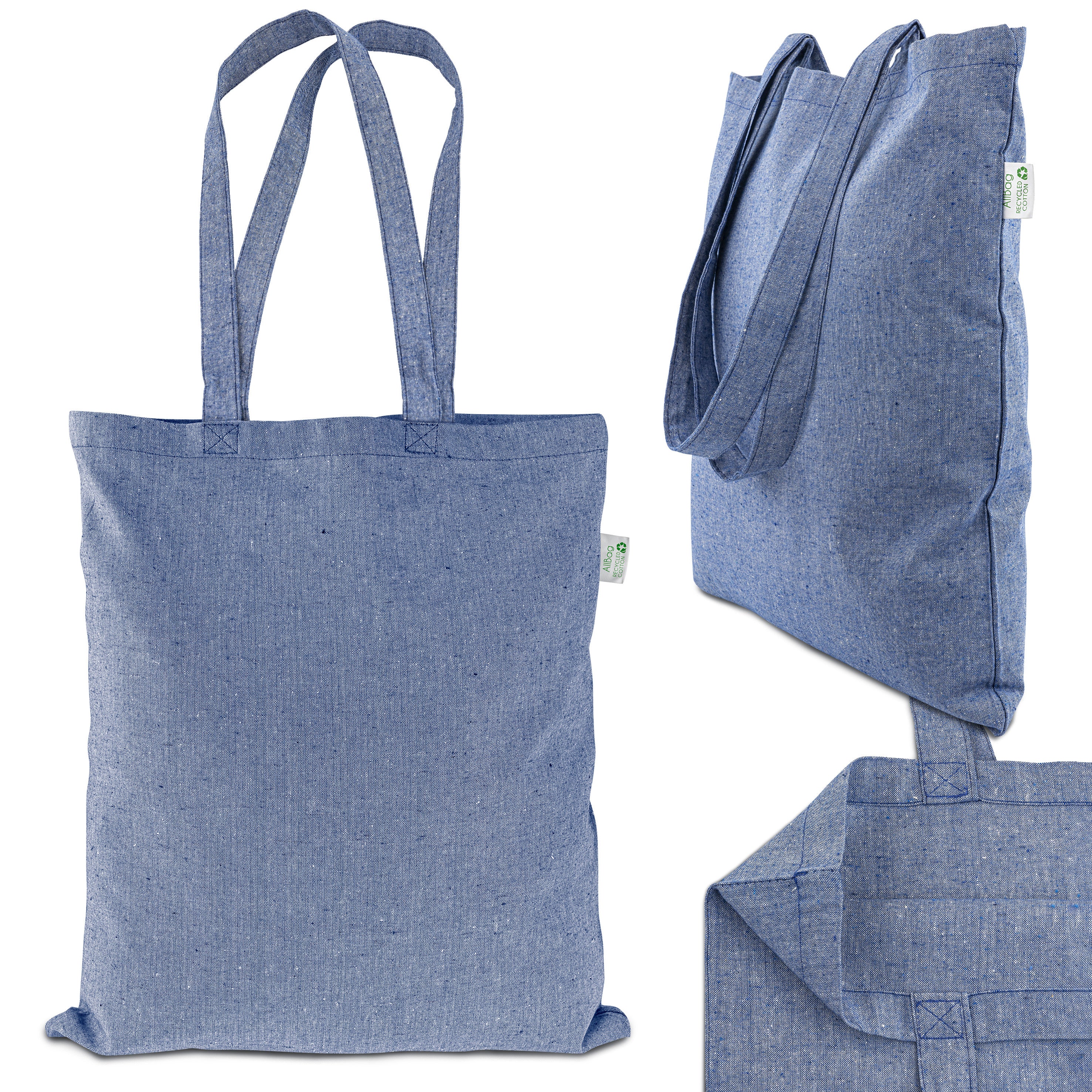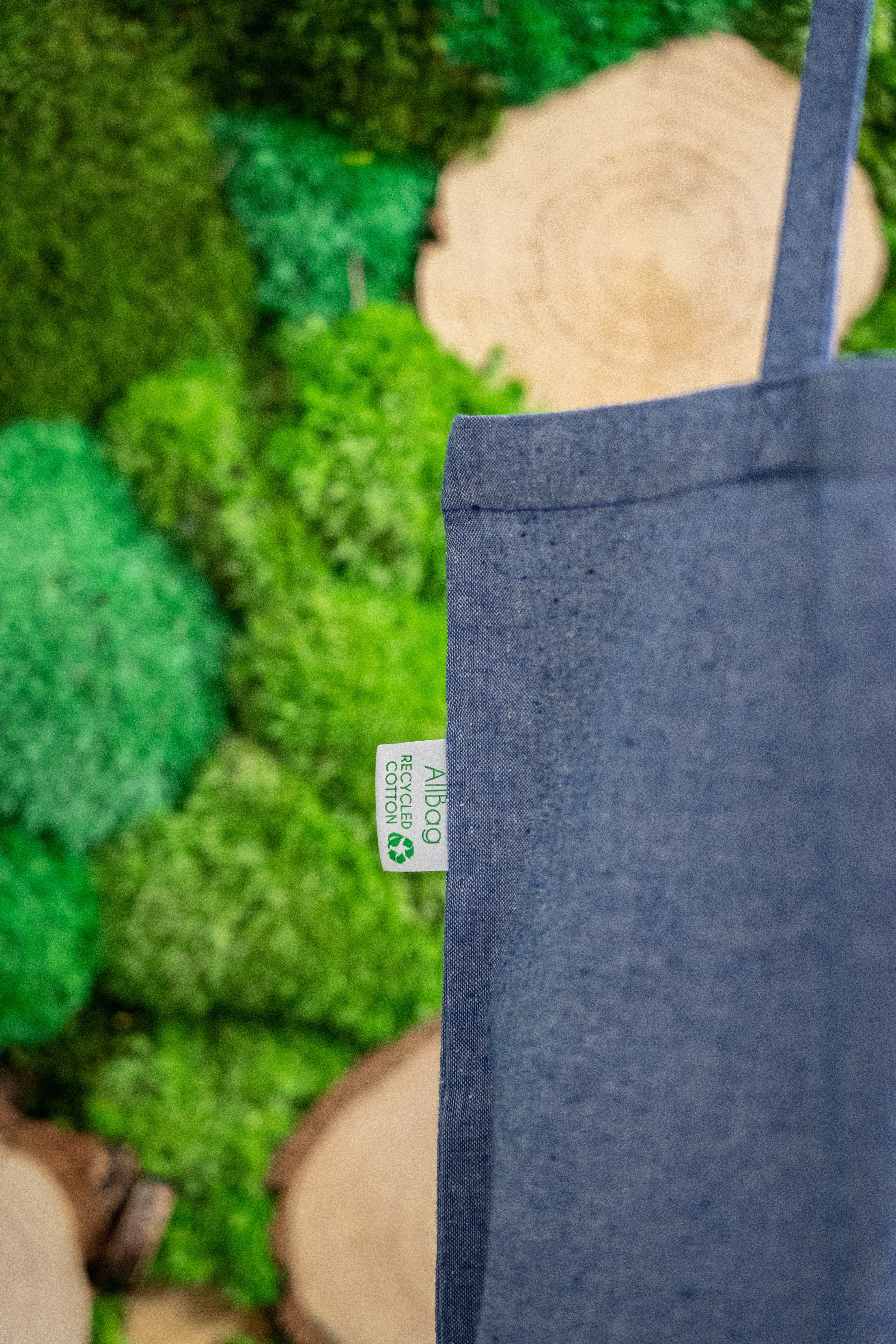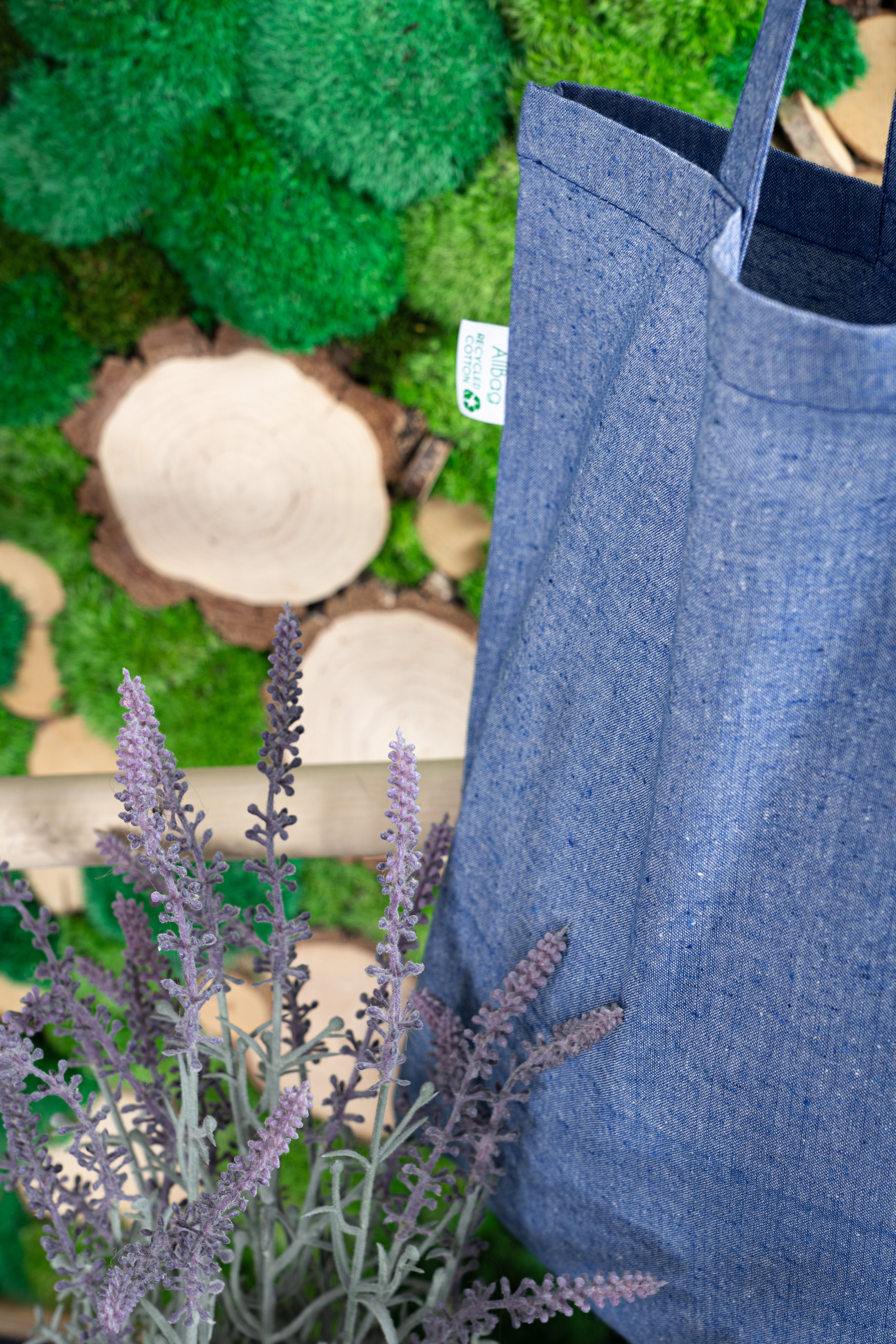 Torba bawełniana NIEBIESKA RECYKLING 38x42cm Uchwyt: 70cm
