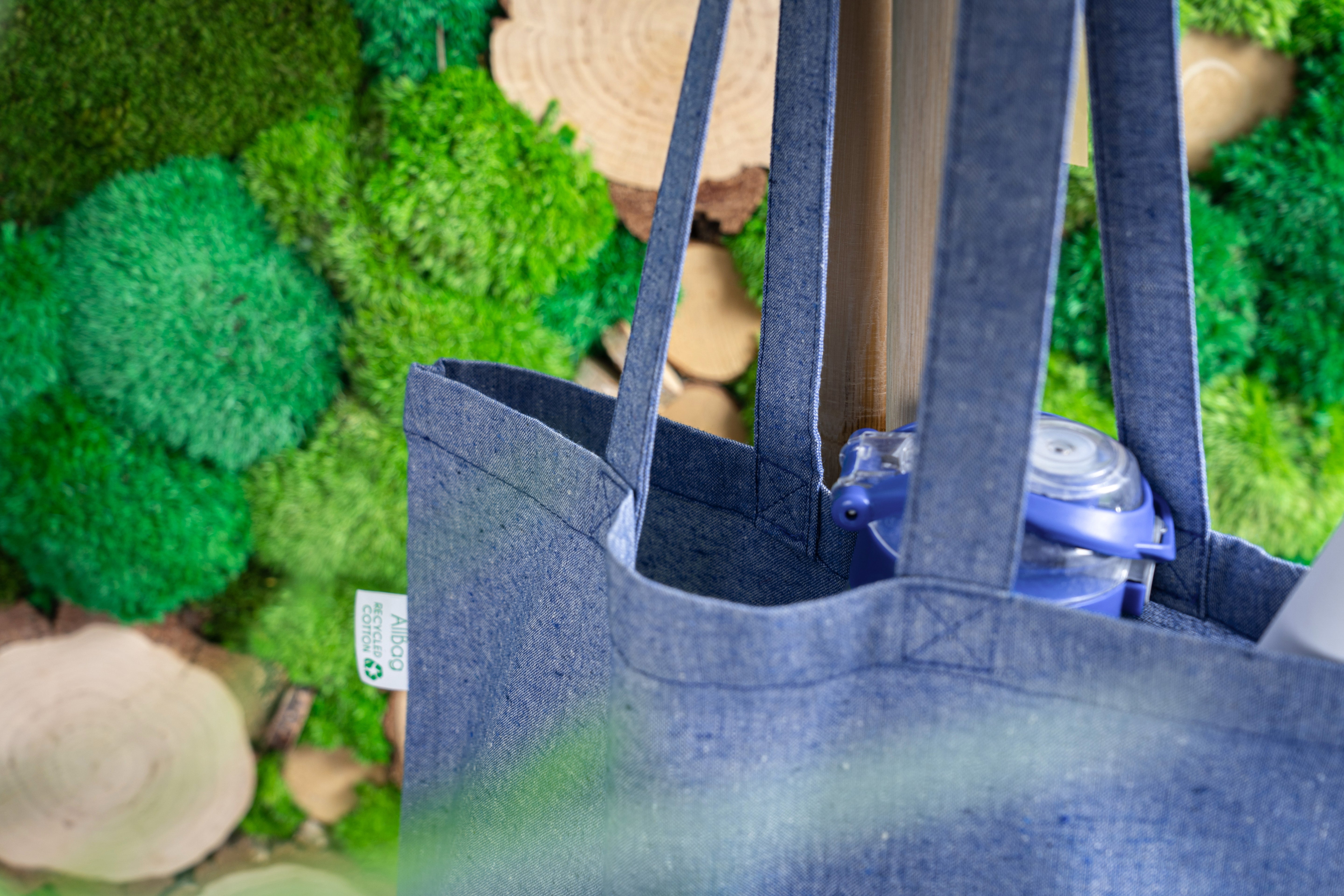 RECYCLING BLUE sac de bumbac 38x42cm Mâner: 70cm