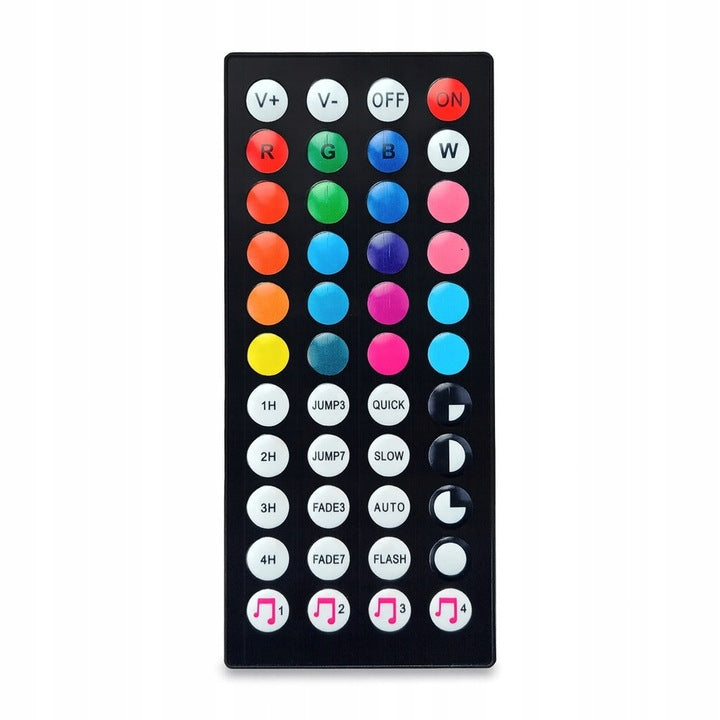 • Sterowanie z kanapy: Pilot daje szybki dostęp do kolorów, programów, ściemniania i prędkości efektów