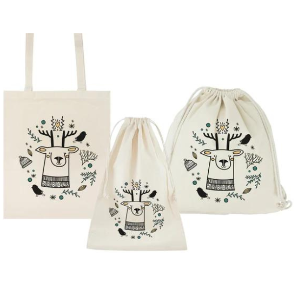 Setul cadou format din geantă, săculeț și rucsac este un cadou special pentru Crăciun. Este atât un produs funcțional, cât și unul decorativ. Este ideal ca dar pentru cei dragi. Persoana care primește acest cadou va fi cu siguranță încântată de unicitatea acestuia.