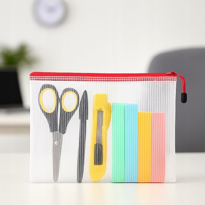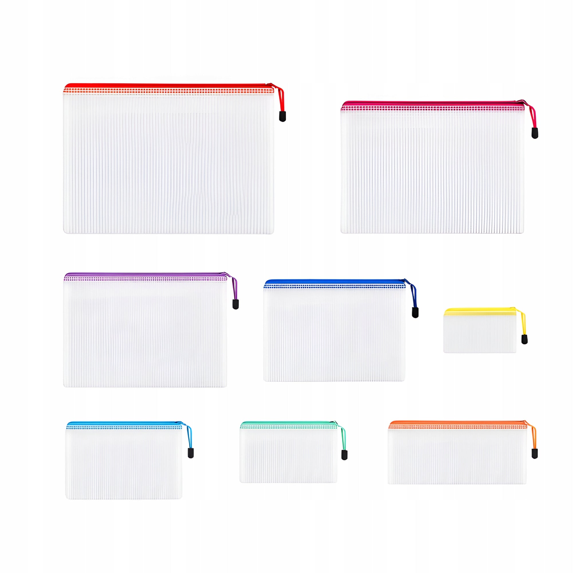 Uporządkuj dokumenty, akcesoria i drobiazgi raz na zawsze. Sięgnij po zestaw 8 siatkowych torebek z zamkiem błyskawicznym, które pomogą Ci wprowadzić porządek w domu, pracy i w podróży.
